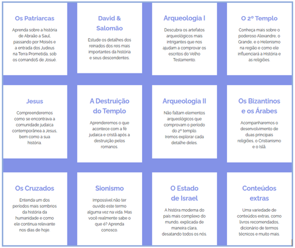 A história de Israel aparece desde quando você liga a televisão, abre um site de notícias, uma rede social e até mesmo a Bíblia! Que tal começar a compreender um pouco dela com uma metodologia fácil, prática e exclusiva?